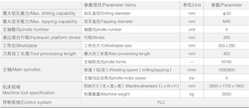 技術亮(liang)點 Technical highlights : 1、 采用液壓/伺服滑台,加工(gong)尺寸精準,定位速(su)度快。 Adopt hydraulic/servo slide table, precise processing size and fast positioning speed. 2、 采用PLC可編控制器,反應(ying)靈敏,操作方便。 Adopt PLC programmable controller, which is responsive and easy to operate. 3、 液壓(ya)系統采用精密電(dian)磁控制閥,調壓方(fang)便,油缸進給平穩(wěn)‼️,行程可調,安裝尺(chǐ)寸統一,互換性佳(jia)。 The hydraulic system adopts precise electromagnetic control valve, which is convenient for pressure regulation, stable feeding of oil cylinder, adjustable stroke, uniform installation size and good interchangeability.
